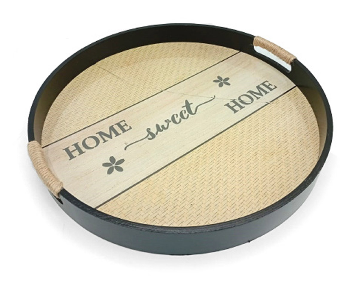 / Bandeja Redonda con Asas y Vidrio 40 x 4.8 cm Home Sweet Home
