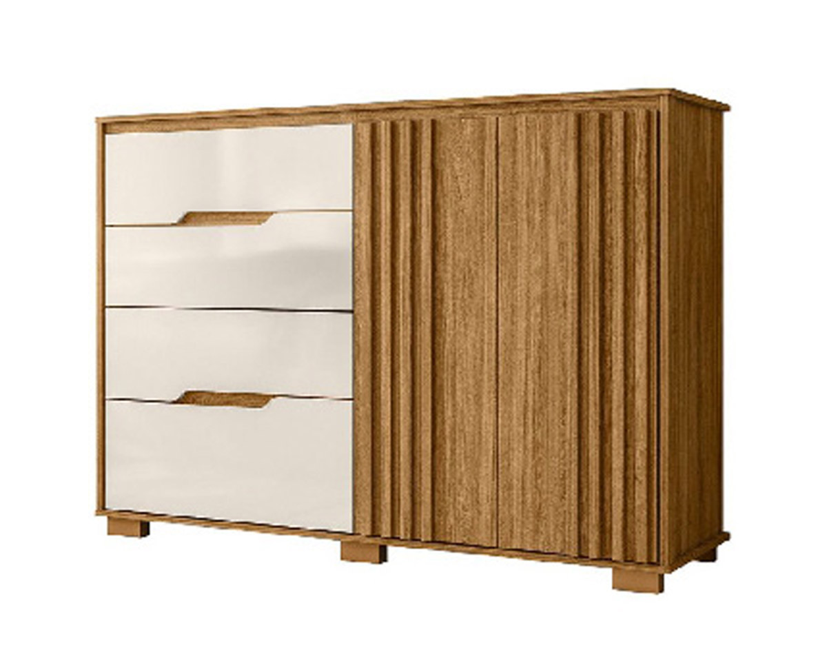 Comoda Texas 105 x 147 x 47 cm Freijo/Blanco con 2 Puertas y 4 Cajones con Patas Vol 2