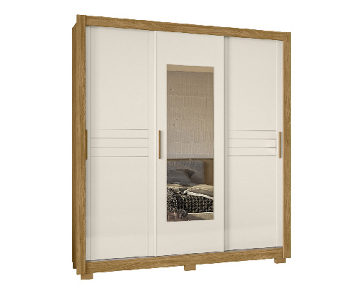 / Ropero Canada 222 x 202 x 52 cm Castaño/Blanco Patas y Espejo con Patas Vol 4
